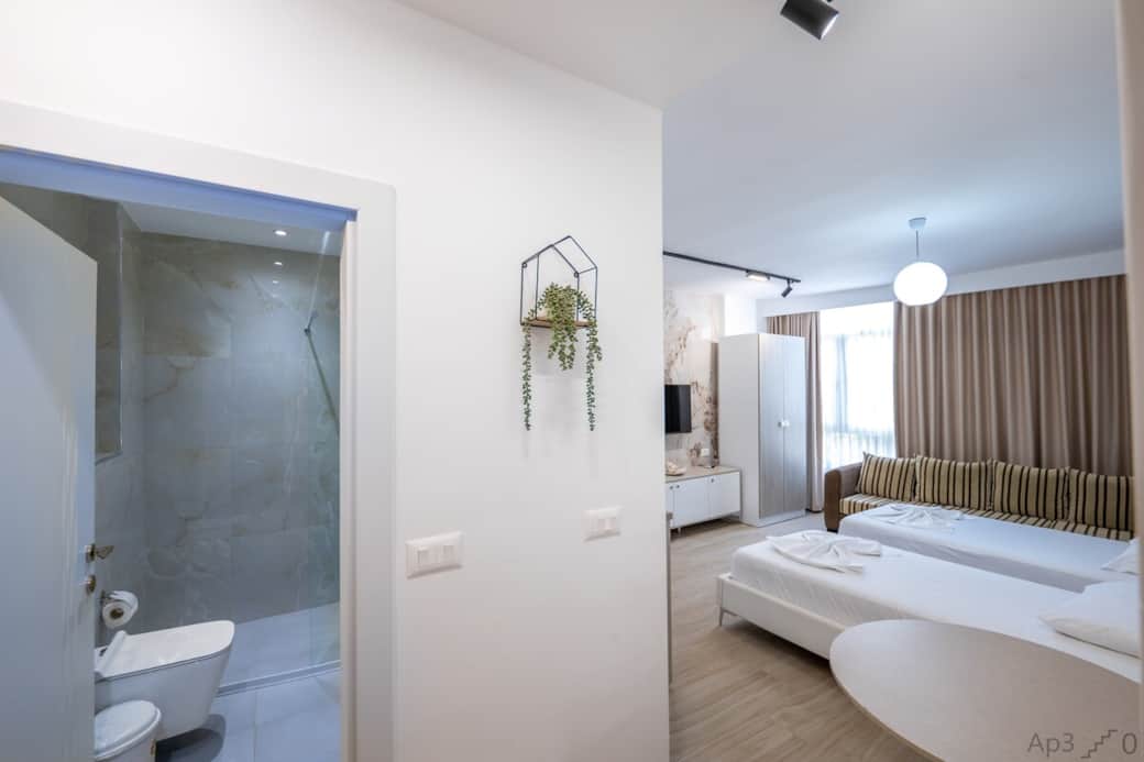 Draps de lit, Sèche-cheveux, Fer et planche à repasser, Douche, Serviettes de bain, Machine à laver, Savon pour le corps, Après-shampoing, Shampooing, Gel douche, Rangement de vêtements, Étendoir à linge, Cintres